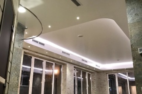 - возможность установки теплоизоляционных и звукоизоляционных материалов, противопожарных и вентиляционных систем в пространстве между натяжным и основным, базовым потолком и др.